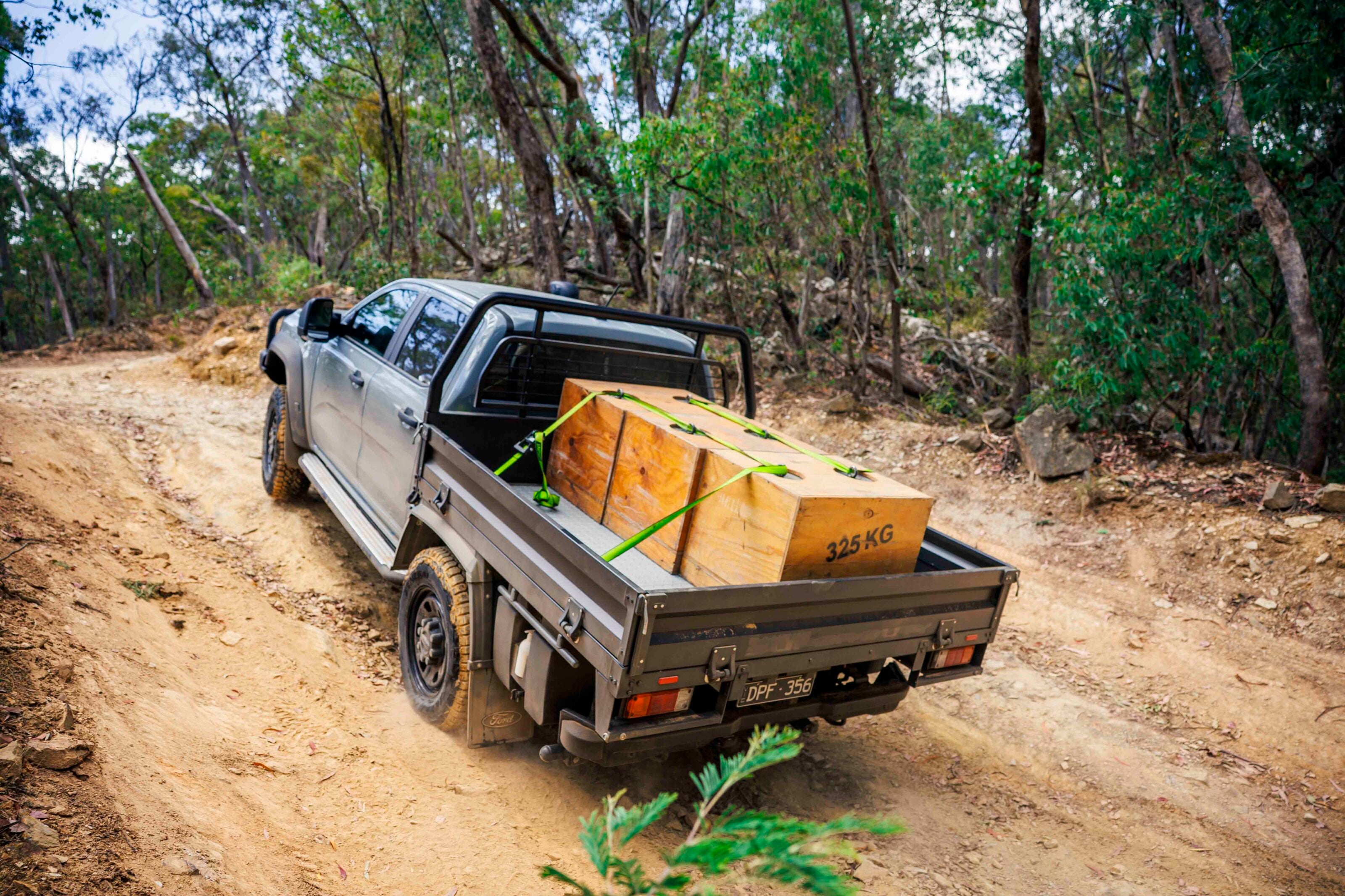 Raudonikis emphasized the off-road touring capability, admitting that they would prefer, "to leave the boat on the mooring rather than attached to a trailer." He set out to test the Ranger Super Duty off-road, loaded almost to its limit. The company loaded 975kg of concrete blocks onto the sturdy factory tray, equivalent to three boxes packed with 325kg each, and ventured into rugged terrain.
